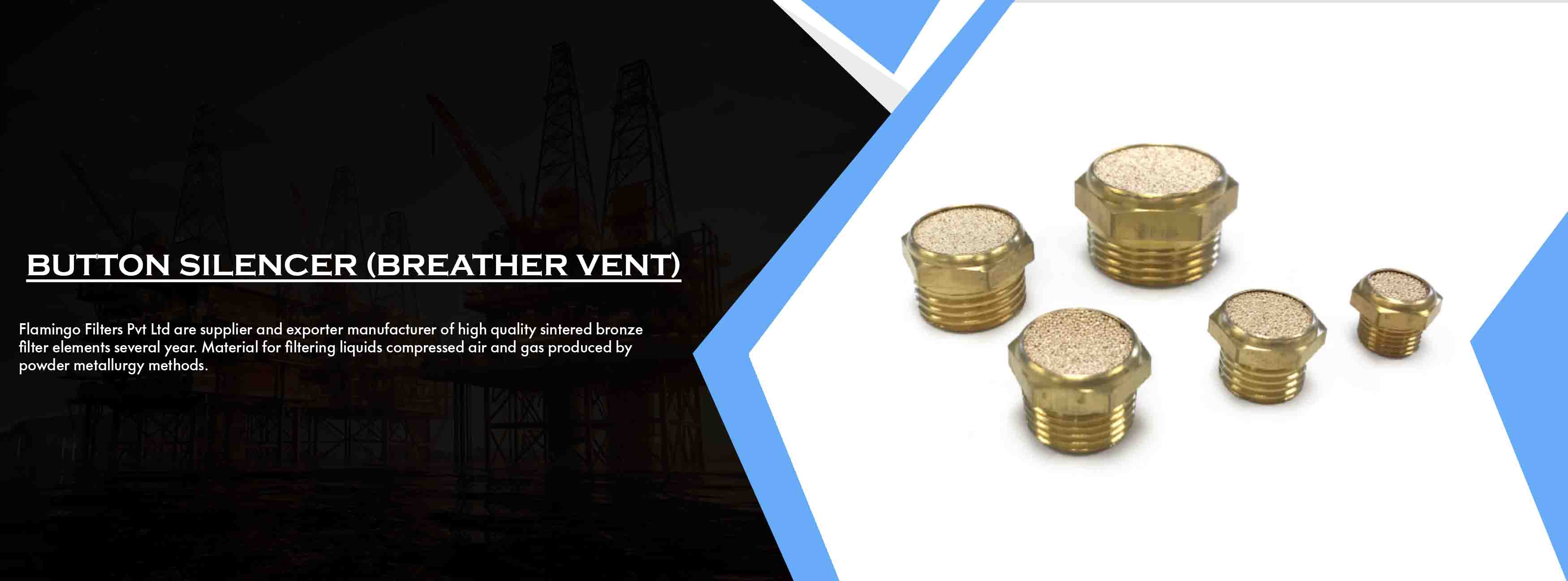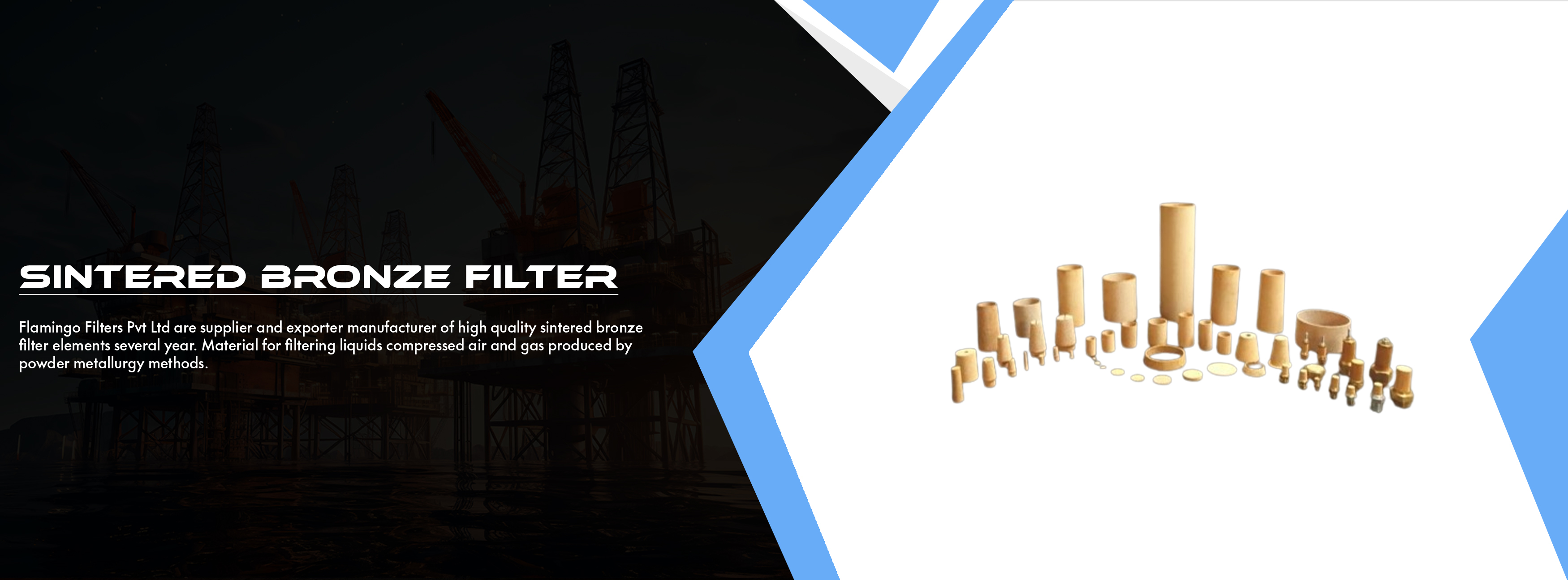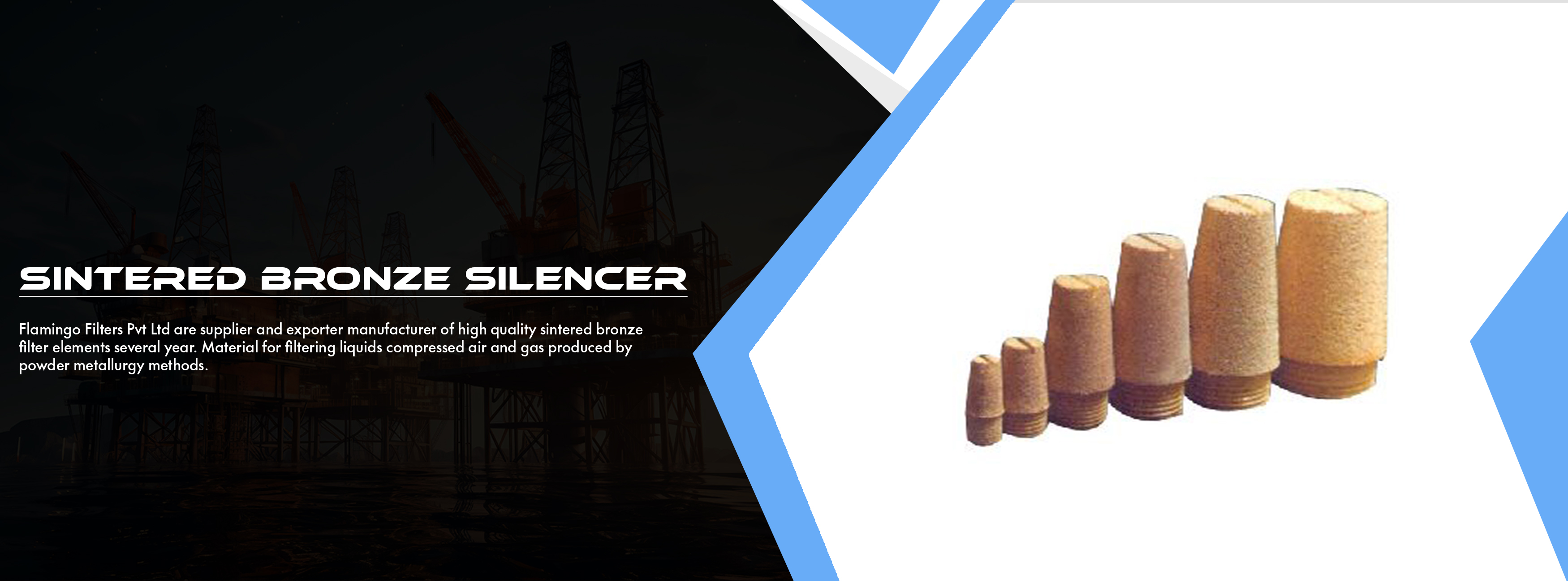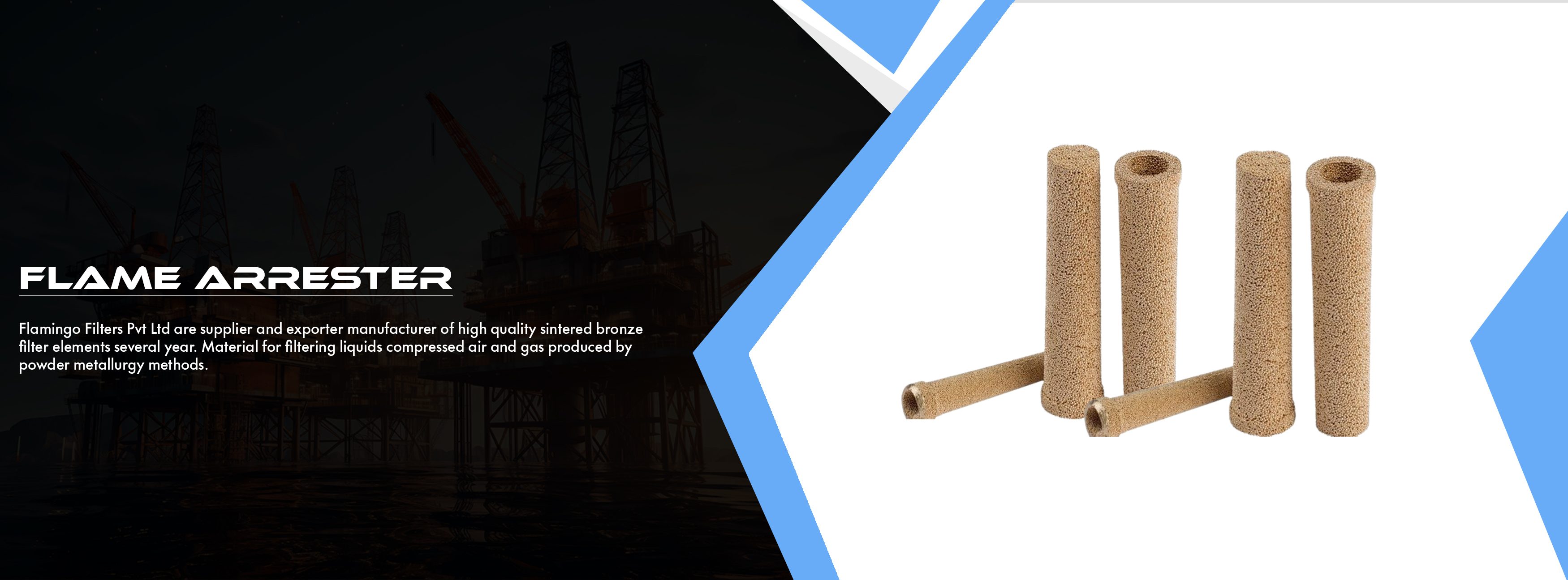 Flamingo Filters Pvt Ltd are supplier and exporter manufacturer of high quality sintered bronze filter elements several year. Material for filtering liquids compressed air and gas produced by powder metallurgy methods. It is produced from spherical bronze metal powder in a variety and shape and sizes. such as a sintered bronze mufflers /silencer ,Cartridge elements ,fluidizing pads flame arrestor s.s.wiremesh elements, paper filter elements and gauge snubbers . These products are available at the most reasonable prices and can also customized in terms of various sizes and designs as per specific requirements of the valuable patrons.Flamingo filters elements closely controlled particle size to give a rigid porous bronze structure of uniform pore dimension.